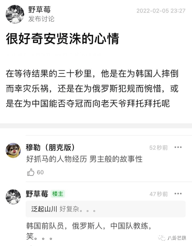 王濛:“是,那不都跑咱这来了么。” “刚刚韩国队摔倒的一瞬间,安贤洙点了一下头,摔得好,不是,就是正常现象,然后我觉得这个没有别人的问题对吧,好,很顺利,非常好”。